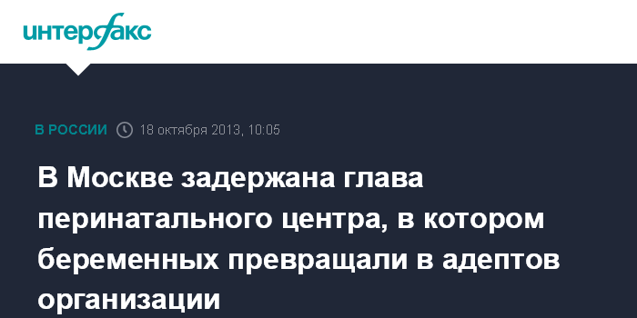 В Москве задержана глава перинатального центра, в котором беременных превращали в адептов организации
