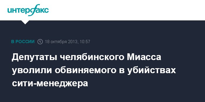 Челябинск. 18 октября. INTERFAX.RU - Депутаты собрания депутатов Миасса Челябинской области на заседании в пятницу уволили сити-менеджера Виктора Ардабьевского, обвиняемого в организации убийств по найму и в соучастии в бандитизме, сообщил "Интерфаксу" советник главы Миасского городского округа Антон Наумов.