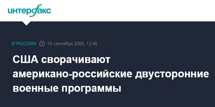 Вашингтон. 18 сентября. INTERFAX.RU - Администрация США приостановила двусторонние военные программы с Россией, и рассматривает другие возможные варианты свертывания сотрудничества из-за действий Москвы на Кавказе, сообщил заместитель госсекретаря США Уильям Бернс.