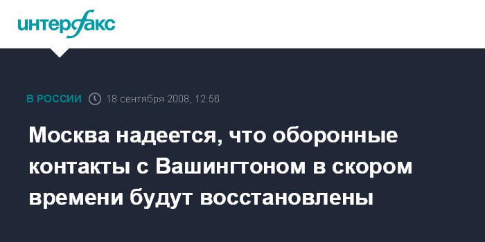 Москва. 18 сентября. INTERFAX.RU - В Москве рассчитывают, что в скором времени обмены по линии оборонных ведомств России и США будут возобновлены.
