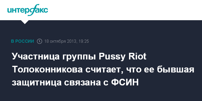Москва. 18 октября. INTERFAX.RU - Участница группы Pussy Riot Надежда Толоконникова просит свою защиту обратиться в Адвокатскую палату с требованием лишить адвокатского статуса ее бывшую защитницу Виолетту Волкову из-за предположений о ее связи с руководством ФСИН.