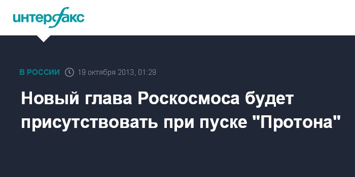 Новый глава Роскосмоса будет присутствовать при пуске "Протона"