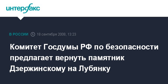 Комитет Госдумы РФ по безопасности предлагает вернуть памятник Дзержинскому на Лубянку