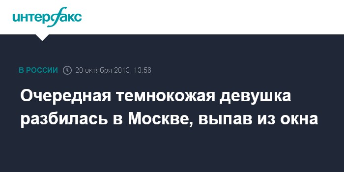 Очередная темнокожая девушка разбилась в Москве, выпав из окна