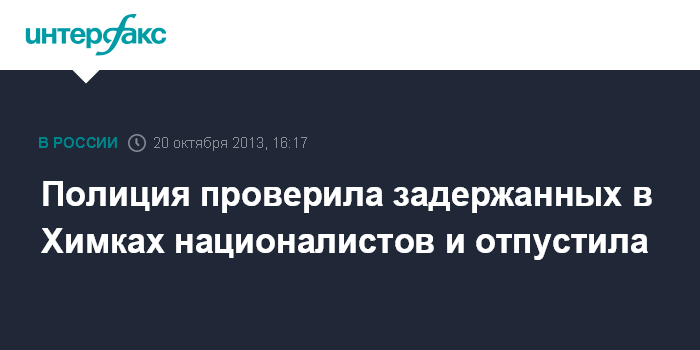 Ранее лидер националистического объединения "Русские" Дмитрий Демушкин сообщил "Интерфаксу", что в Химках были задержаны активисты, которые намеревались провести очередной рейд по выявлению мест пребывания нелегальных мигрантов.