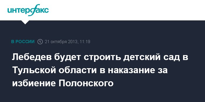 Лебедев будет строить детский сад в Тульской области в наказание за избиение Полонского