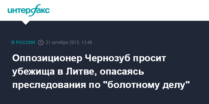 Москва. 21 октября. INTERFAX.RU - Оппозиционный активист Всеволод Чернозуб попросил политическое убежище в Литве, опасаясь преследования по "Болотному делу".