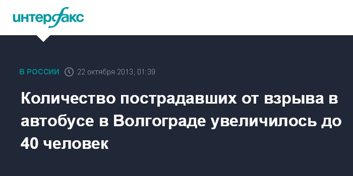 Ростов-на-Дону. 22 октября. ИНТЕРФАКС-ЮГ - Число пострадавших в результате взрыва в автобусе в Волгограде увеличилось до 40 человек, сообщили агентству "Интерфакс-Юг" в экстренных службах региона.