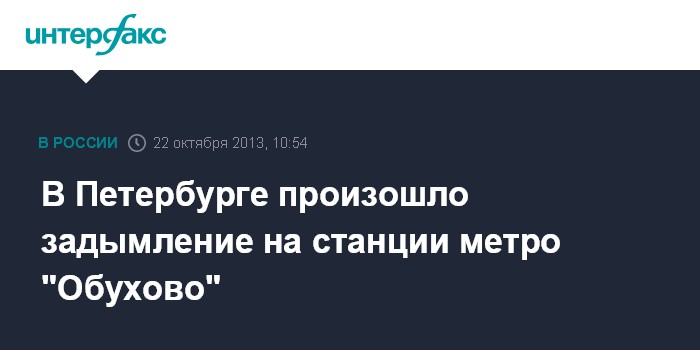 Санкт-Петербург. 22 октября. INTERFAX.RU - В службу спасения северной столицы во вторник утром поступило сообщение о задымлении на станции метро "Обухово".