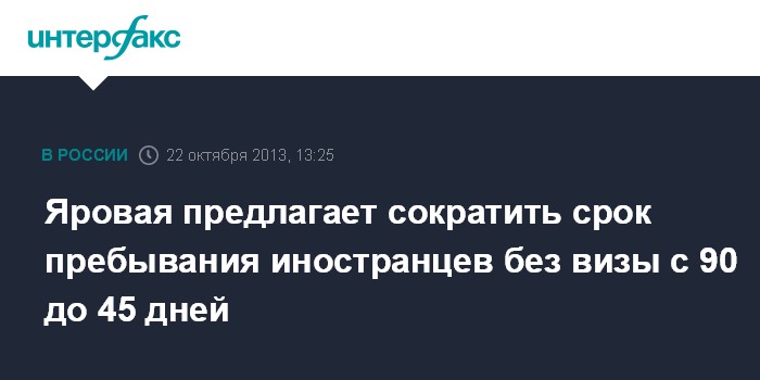 Кроме того, предлагается сократить общий срок временного пребывания иностранного гражданина на территории России без визы с 90 до 45 дней.