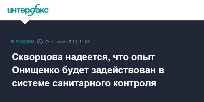 Скворцова надеется, что опыт Онищенко будет задействован в системе санитарного контроля