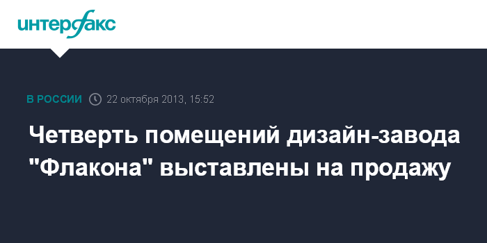 Москва. 22 октября. INTERFAX.RU - Владельцы дизайн-завода "Флакон" на севере Москвы решили выставить на продажу 6 тыс. кв. м помещения объекта или четверть всех пространств на "Флаконе", сообщил журналистам владелец дизайн-завода Николай Матушевский.