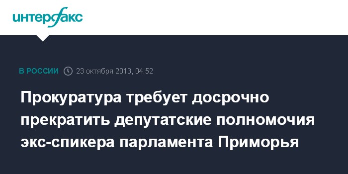 Прокуратура требует досрочно прекратить депутатские полномочия экс-спикера парламента Приморья