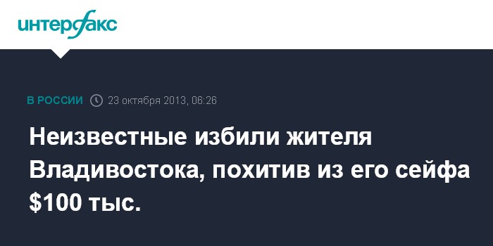 Неизвестные избили жителя Владивостока, похитив из его сейфа $100 тыс.