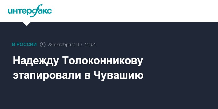 Москва. 23 октября. INTERFAX.RU - Осужденная участница панк-группы Pussy Riot Надежда Толоконникова отправлена в чувашскую колонию, сообщил "Интерфаксу" ее супруг Петр Верзилов в среду.