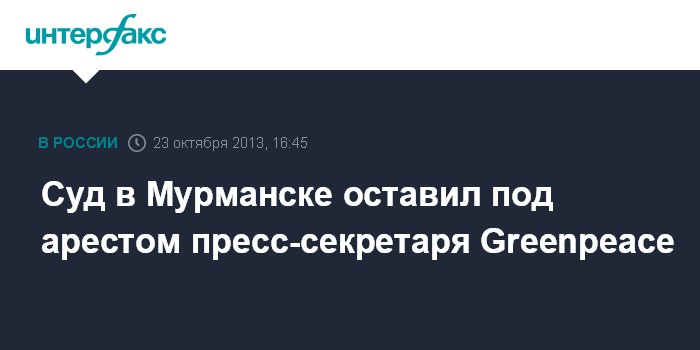 Суд в Мурманске оставил под арестом пресс-секретаря Greenpeace