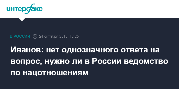 Иванов: нет однозначного ответа на вопрос, нужно ли в России ведомство по нацотношениям