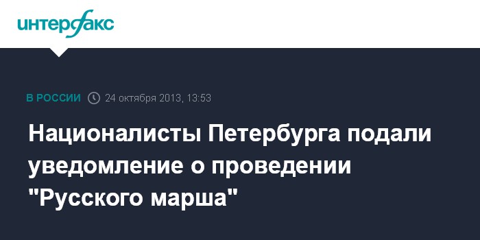 Санкт-Петербург. 24 октября. INTERFAX.RU - Около десятка националистических организаций Санкт-Петербурга намерены провести в центре города "Русский марш".