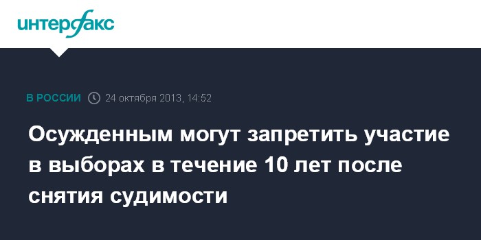 Законодательная инициатива также предусматривает недопуск к выборам осужденных когда-либо к лишению свободы за совершение особо тяжких преступлений, за исключением случаев, когда в соответствии с новым уголовным законом эти деяния не признаются тяжкими и особо тяжкими преступлениями, в течение 15 лет со дня снятия или погашения судимости.