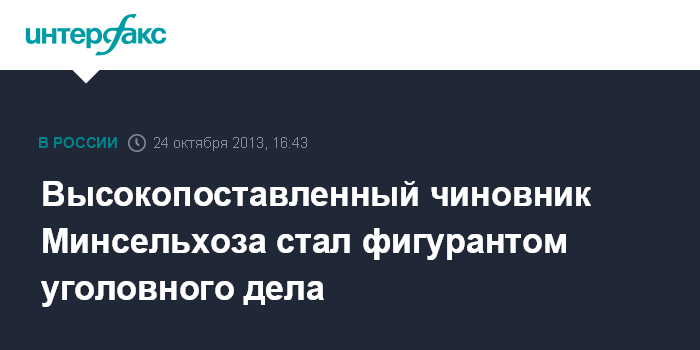 Высокопоставленный чиновник Минсельхоза стал фигурантом уголовного дела
