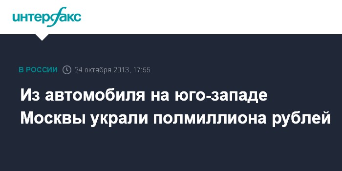 Москва. 24 октября. INTERFAX.RU - Столичная полиция разыскивает грабителей, укравших из автомобиля на юго-западе Москвы сумку, в которой было полмиллиона рублей.