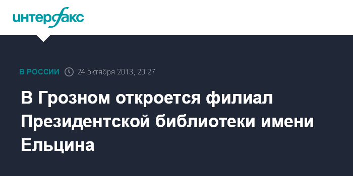 Санкт-Петербург. 24 октября. INTERFAX.RU - Первый на Северном Кавказе филиал Президентской библиотеки имени Ельцина откроется в столице Чечни. Как сообщает пресс-служба библиотеки, в четверг соответствующее соглашение подписали генеральный директор Президентской библиотеки Александр Вершинин и глава Чеченской Республики Рамзан Кадыров.