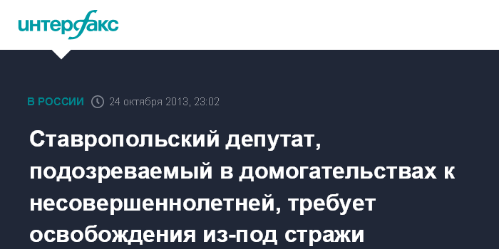 Ставропольский депутат, подозреваемый в домогательствах к несовершеннолетней, требует освобождения из-под стражи