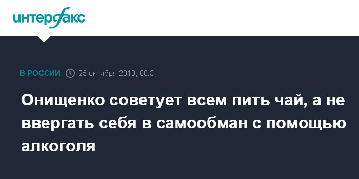Онищенко советует всем пить чай, а не ввергать себя в самообман с помощью алкоголя