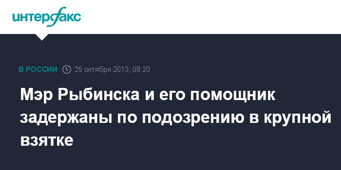 Мэр Рыбинска и его помощник задержаны по подозрению в крупной взятке
