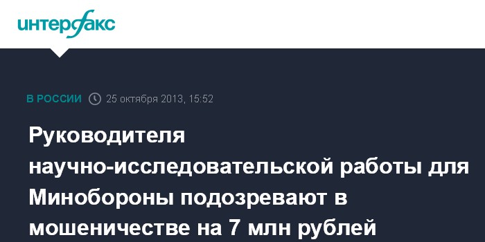 Руководителя научно-исследовательской работы для Минобороны подозревают в мошеничестве на 7 млн рублей