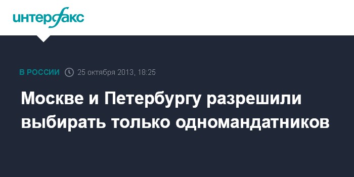 Москва. 25 октября. INTERFAX.RU - Госдума в пятницу приняла в третьем, окончательном, чтении закон, позволяющий Москве и Санкт-Петербургу уже на следующих выборах сформировать Мосгордуму и Заксобрание полностью из депутатов-одномандатников.