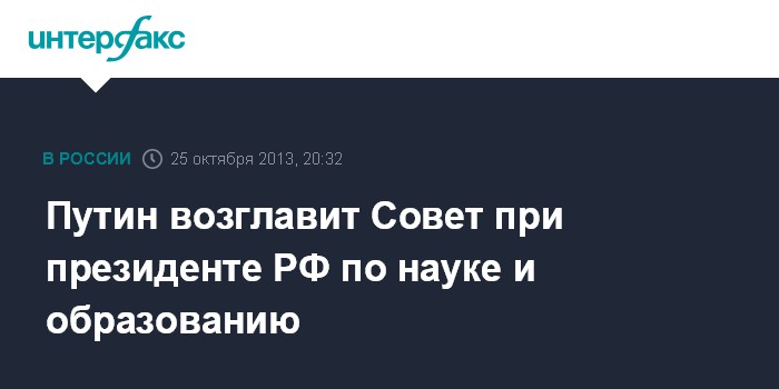 Путин возглавит Совет при президенте РФ по науке и образованию