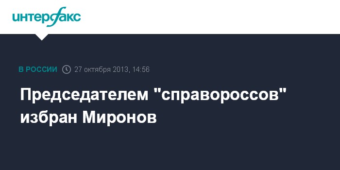 Москва. 27 октября. INTERFAX.RU - Сергей Миронов избран председателем "Справедливой России" на съезде партии в Москве в воскресенье. До настоящего момента С.Миронов занимал должность главы совета палаты депутатов "Справедливой России", а ее председателем был Николай Левичев.