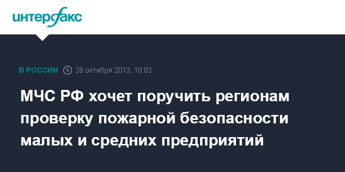 Москва. 28 октября. INTERFAX.RU - МЧС России планирует полностью вывести из-под своего надзора в области пожарной безопасности предприятия малого и среднего бизнеса, а также установить для них "каникулы", освободив их на пять лет от проверок.