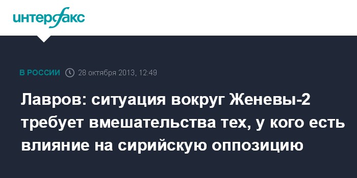 Ростов-на-Дону. 28 октября. INTERFAX.RU - Глава МИД РФ Сергей Лавров призывает тех, кто имеет влияние на сирийскую оппозицию, вмешаться в ситуацию для созыва конференции "Женева-2".