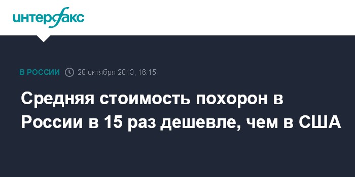 Средняя стоимость похорон в России в 15 раз дешевле, чем в США