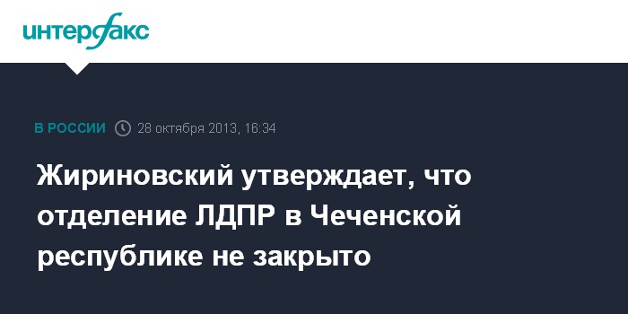 Москва. 28 октября. INTERFAX.RU - Лидер ЛДПР Владимир Жириновский заявил, что отделение партии в Чечне продолжает работу.