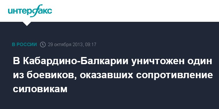 Ростов-на-Дону. 29 октября. INTERFAX.RU - Один из блокированных в частном домовладении села Залукокоаже боевиков уничтожен, сообщили во вторник "Интерфаксу" в правоохранительных органах КБР.