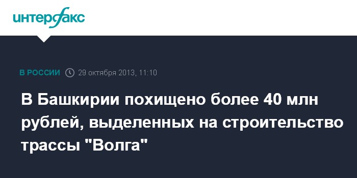 В Башкирии похищено более 40 млн рублей, выделенных на строительство трассы "Волга"