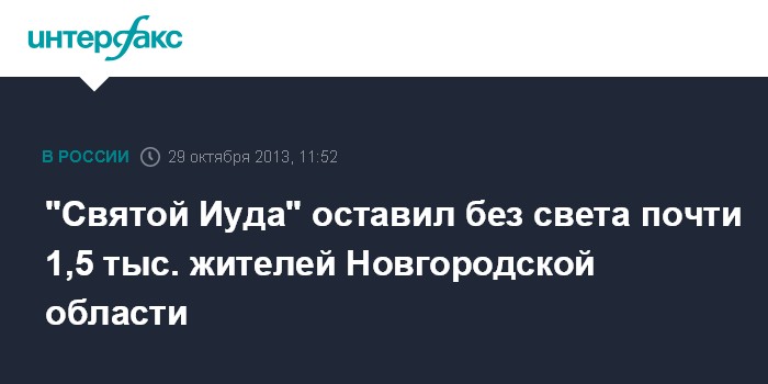"Святой Иуда" оставил без света почти 1,5 тыс. жителей Новгородской области