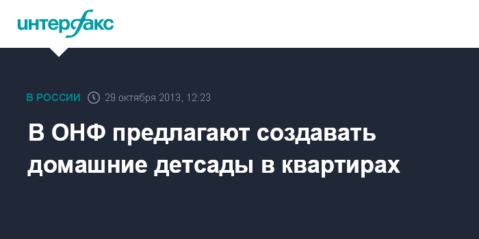 Москва. 29 октября. INTERFAX.RU - Сопредседатель центрального штаба Общероссийского народного фронта (ОНФ), депутат Госдумы Ольга Тимофеева предлагает решить проблему обеспеченности дошкольными детскими учреждениями за счет создания домашних детсадов в жилых квартирах, для чего надо изменить требования санитарных норм.