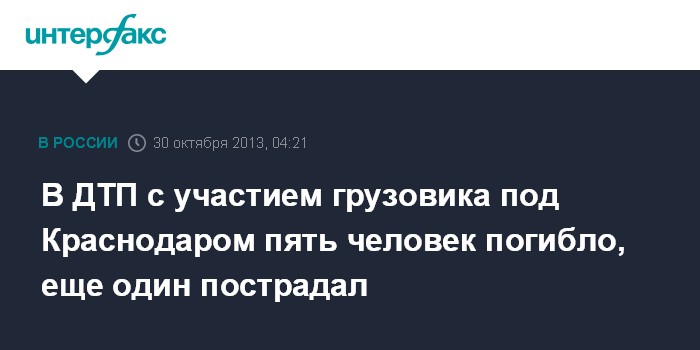 В ДТП с участием грузовика под Краснодаром пять человек погибло, еще один пострадал