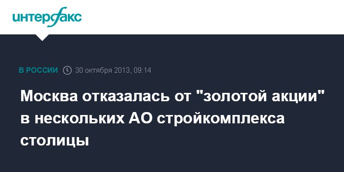 Москва отказалась от "золотой акции" в нескольких АО стройкомплекса столицы