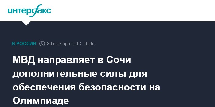 Москва. 30 октября. INTERFAX.RU - МВД в ближайшее время направит в Краснодарский край дополнительные силы в связи с подготовкой Олимпиады в Сочи, сообщил глава ведомства Владимир Колокольцев.