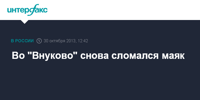 Москва. 30 октября. INTERFAX.RU - Второй раз за эту неделю вышел из строя курсовой маяк в международном аэропорту "Внуково", самолеты сажают по расписанию, поскольку погодные условия благоприятны, сообщила начальник пресс-центра аэропорта Елена Крылова.