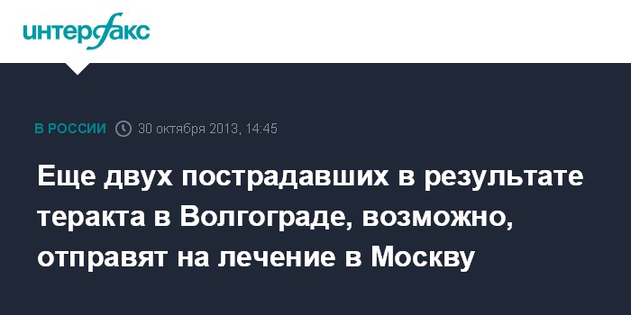 Еще двух пострадавших в результате теракта в Волгограде, возможно, отправят на лечение в Москву