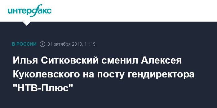"30 октября состоялось заседание совета директоров ОАО "НТВ-Плюс". Решением совета директоров Алексей Куколевский освобожден от должности гендиректора, на его место назначен Илья Ситковский", - сказали в пресс-службе.