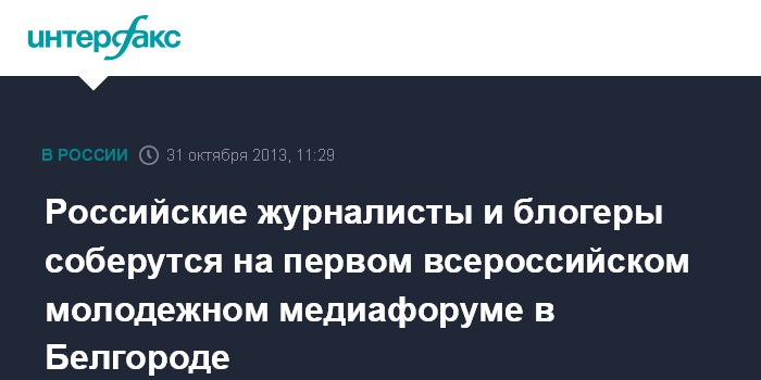 Белгород. 31 октября. INTERFAX.RU - Первый всероссийский молодежный медиафорум пройдет в Белгороде с 1 по 3 ноября.