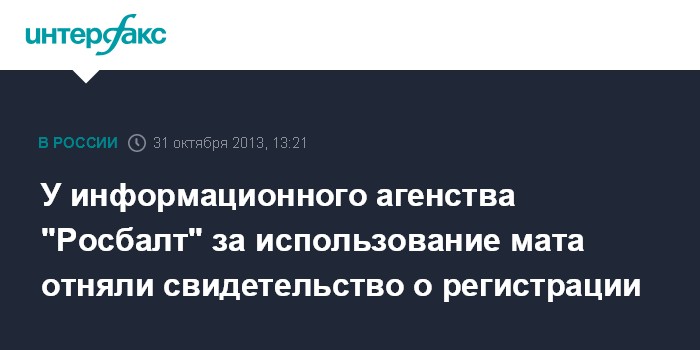 У информационного агенства "Росбалт" за использование мата отняли свидетельство о регистрации