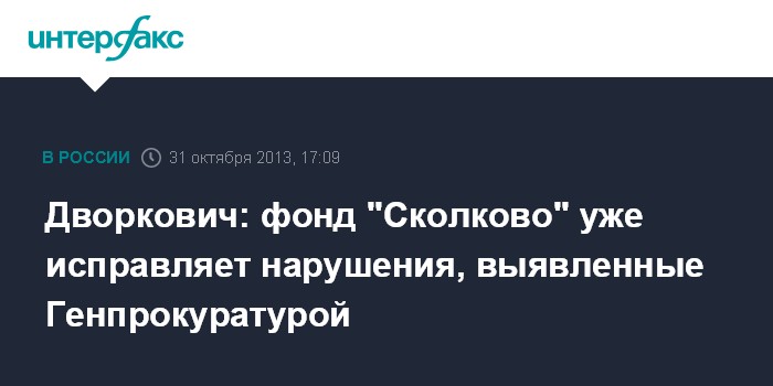 Дворкович: фонд "Сколково" уже исправляет нарушения, выявленные Генпрокуратурой